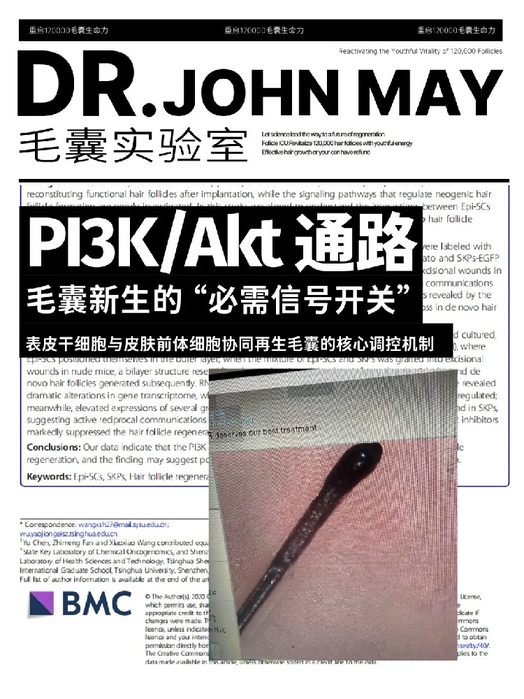 PI3K/Akt 信号通路的发现,填补了成体毛囊新生再生中上皮 - 间充质细胞互作的分子机制空白。未来研究可进一步探索该通路与 Wnt 等其他通路的交叉调控,为构建更高效的毛囊再生策略奠定基础
