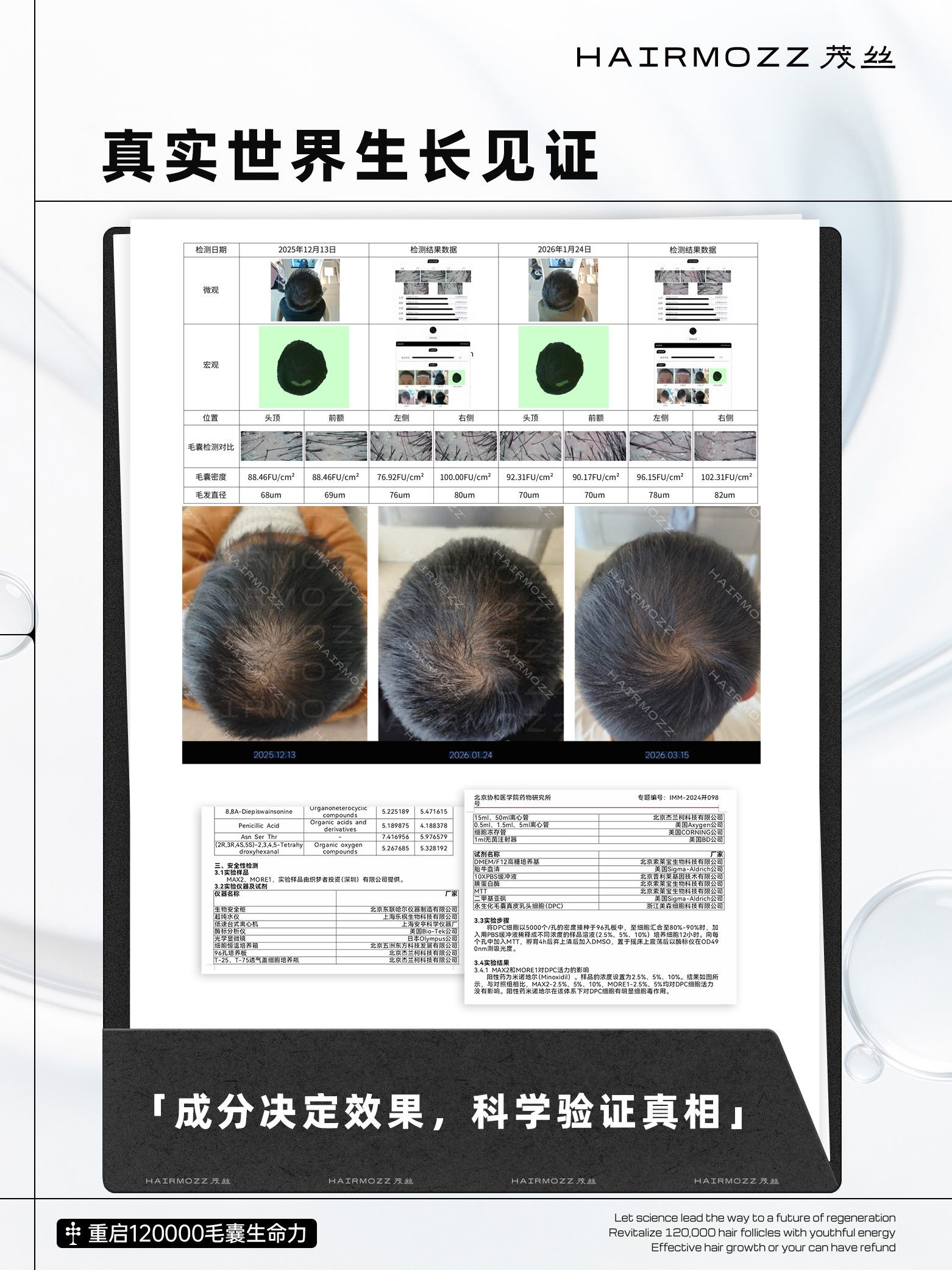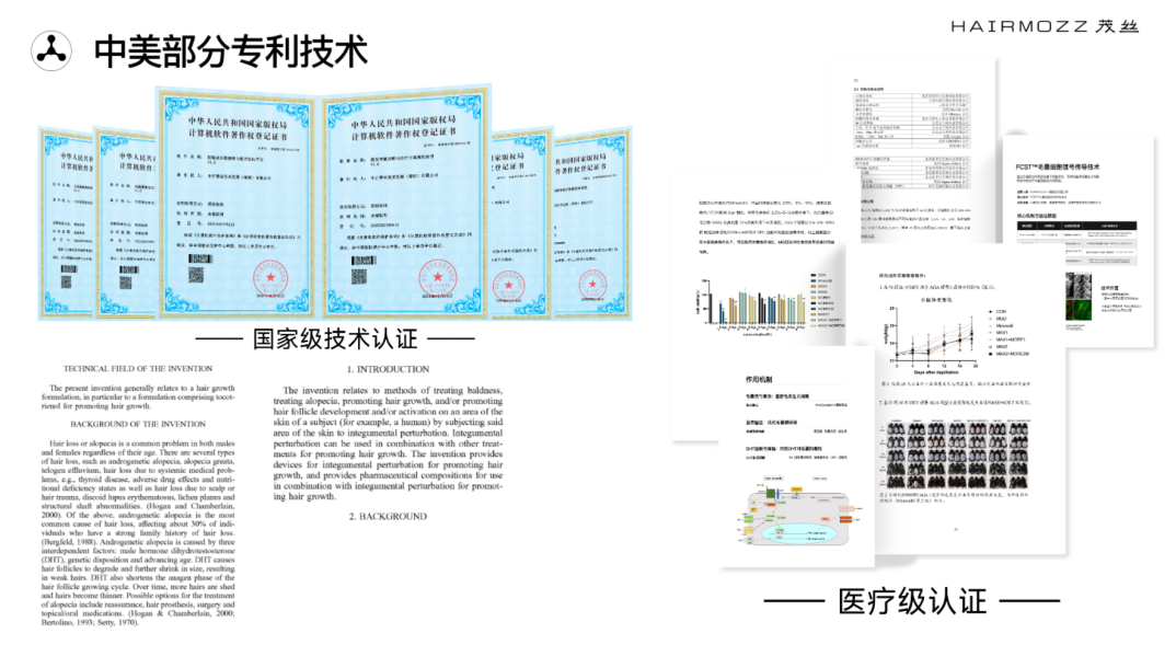 HAIRMOZZ 茂丝坚持以科研为根基、以合规为底线、以效果为导向,用前沿生物科技重新定义国人毛囊健康管理标准,让科学、安全、长效的毛囊再生,成为每一位脱发人群的可靠选择。