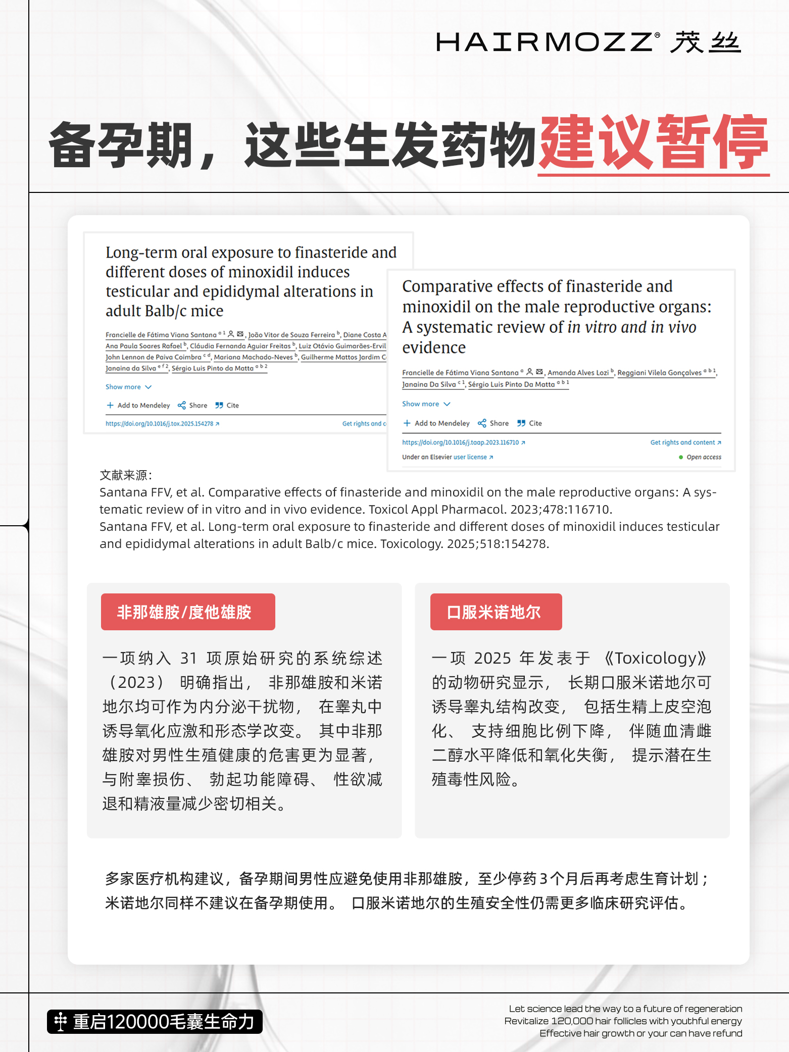 2023年发表在Toxicology and Applied Pharmacology上的一项系统综述纳入了31项原始研究,明确指出:非那雄胺和米诺地尔均可作为内分泌干扰物,在睾丸中诱导氧化应激和形态学改变。其中,非那雄胺对男性生殖健康的危害更为显著,与附睾损伤、勃起功能障碍、性欲减退和精液量减少密切相关
