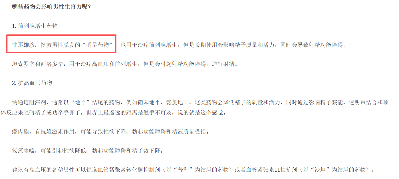 基于以上证据,上海市卫生健康委员会在其官方科普文章中明确指出,非那雄胺“长期使用会影响精子质量和活力,同时会导致射精功能障碍”。多家权威医疗机构也建议,备孕期间男性应避免使用非那雄胺,一般建议停药3个月以上再考虑生育计划