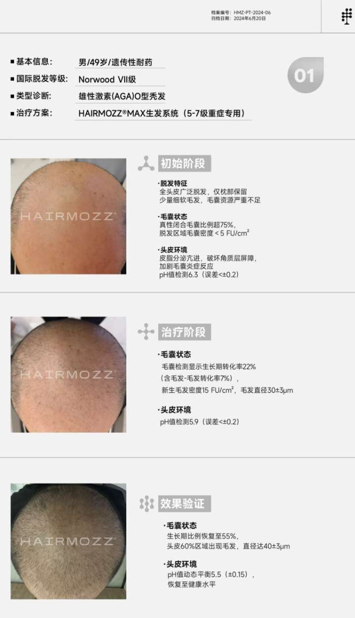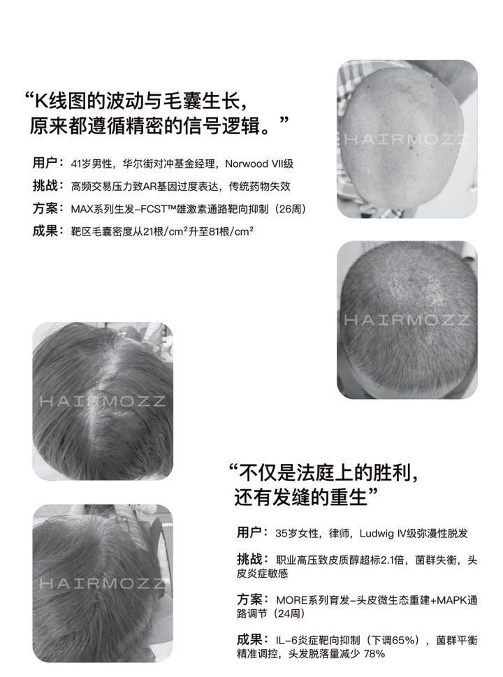 目前,基于该机制的靶向制剂已在临床验证中显示出显著效果,98% 的脱发患者可观察到新生毛囊密度提升,为脱发治疗从 “对症干预” 迈向 “机制修复” 提供了科学依据。