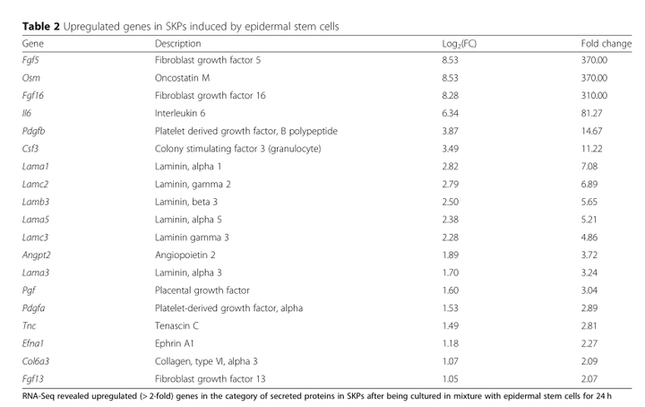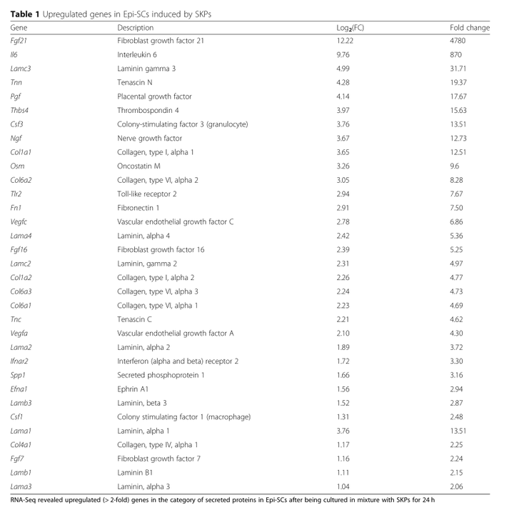 通过 RNA-seq 分析共培养 24 小时后的 Epi-SCs 与 SKPs 转录组,发现:
