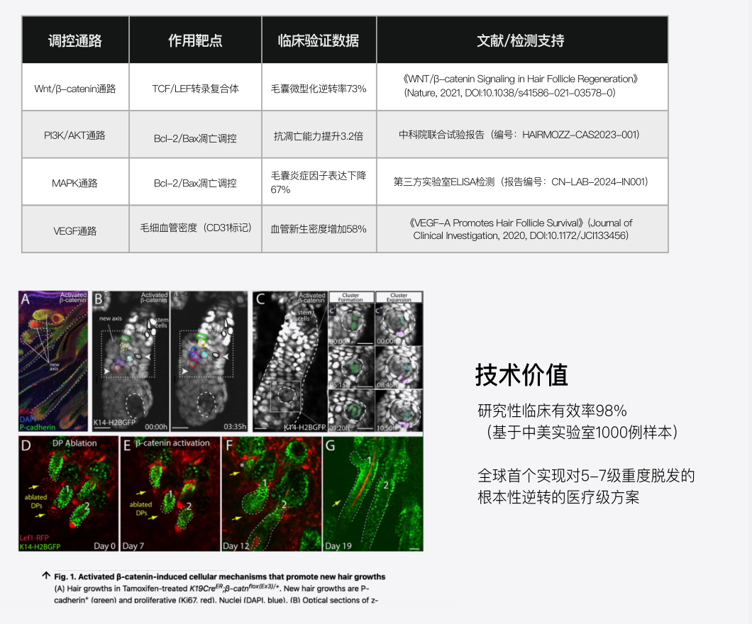 本研究的价值,不仅在于解析了基础机制,更在于为脱发治疗提供了 “可落地的靶点”。我方的毛囊信号通路制剂,正是基于这一机制研发,实现了 “从基础研究到临床应用” 的转化。