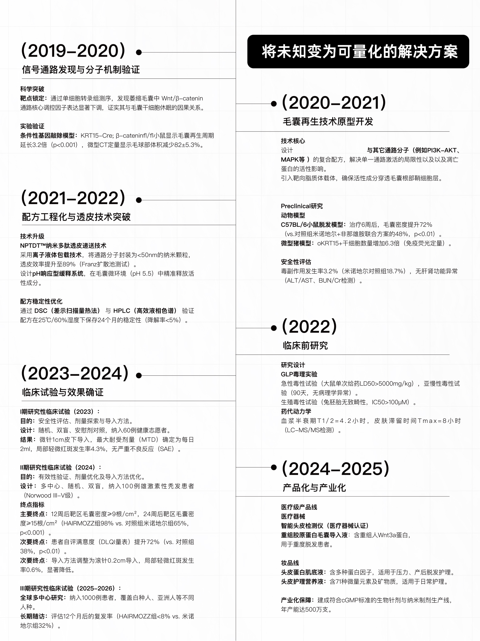 这一设计方案的本质,是提供一个完整的“毛囊生态重建工具箱”,而非施加某种单一强效药物。其目标不是去对抗基因,而是去重塑一个毛囊干细胞愿意“醒来”的环境。