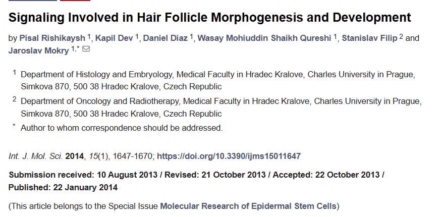 Rishikaysh P, et al. Signaling involved in hair follicle morphogenesis and development. Int J Mol Sci. 2014;15(1):1647-1670.