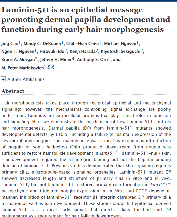 Gao J, et al. Laminin-511 regulates hair follicle stem cell anchorage and activation through β1 integrin signaling. Nat Commun. 2024;15:3852.